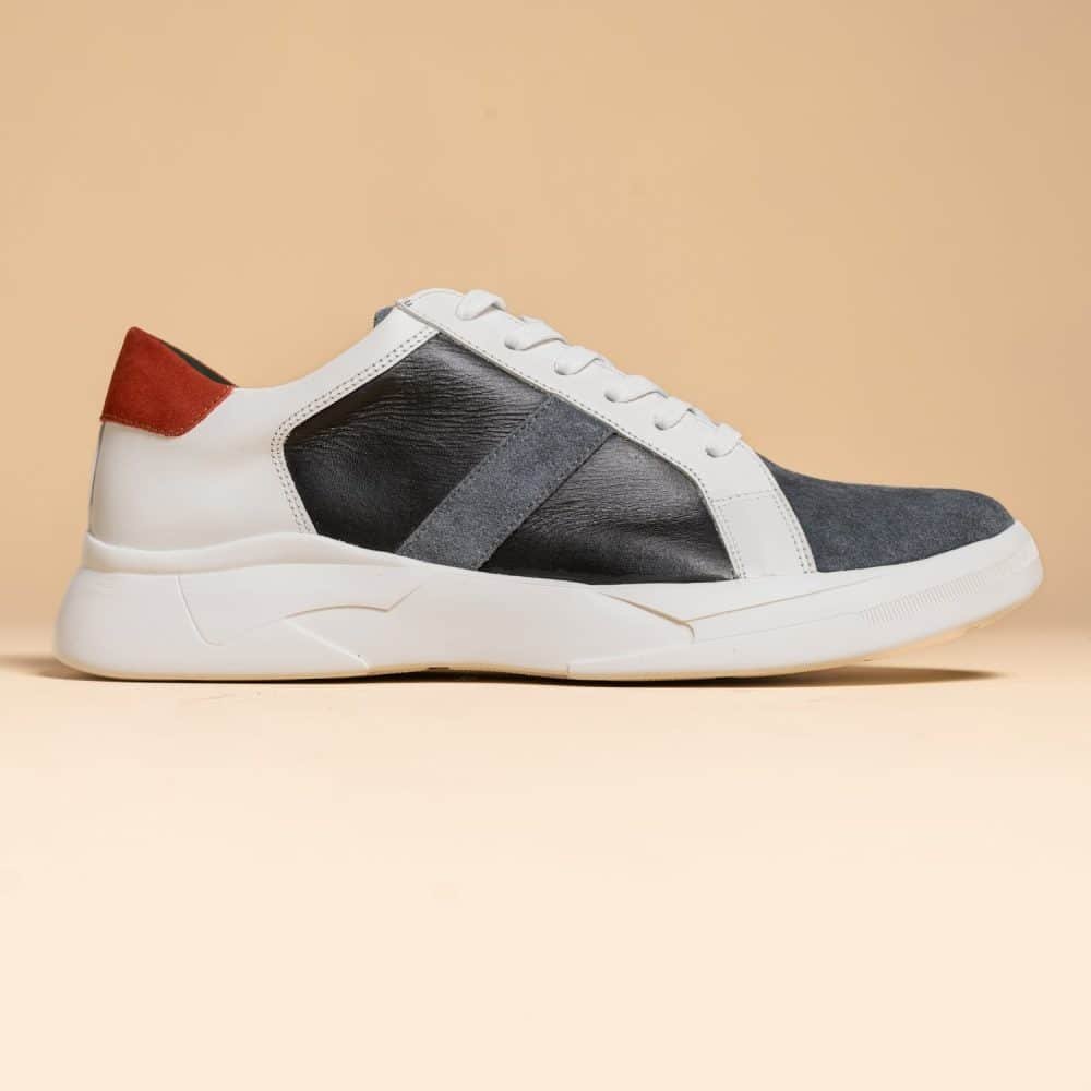 Los Tenis Medellin están hechos a mano por artesanos colombianos. Tiene una pieza en contraste que evoca la grandeza de las montañas en sus tierras. Combina los grises y los negros para poder darle un toque único a tu atuendo. Estos zapatos están hechos en 100% cuero y son extremadamente livianos.